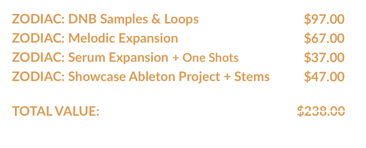 🔥 ZODIAC is a massive, cutting-edge Drum & Bass production suite, packed with a premium library of sounds designed to help you create incredible DNB!